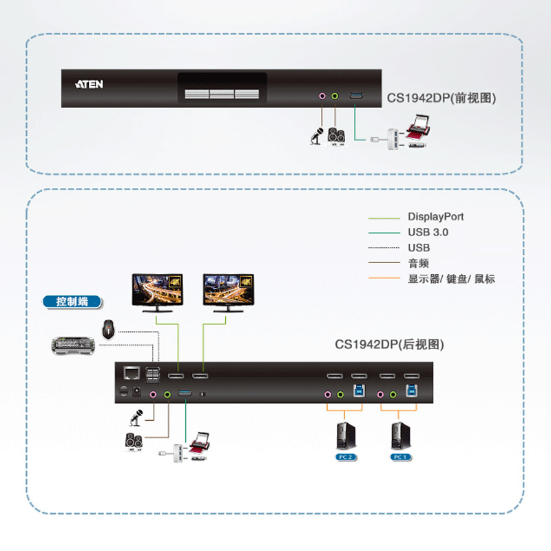 ATEN macro positive CS1942DP 2 port USB 3 0 4K DP Dual screen KVM switcher supports MST