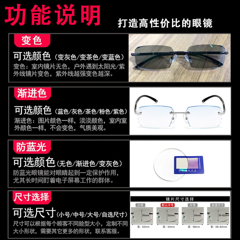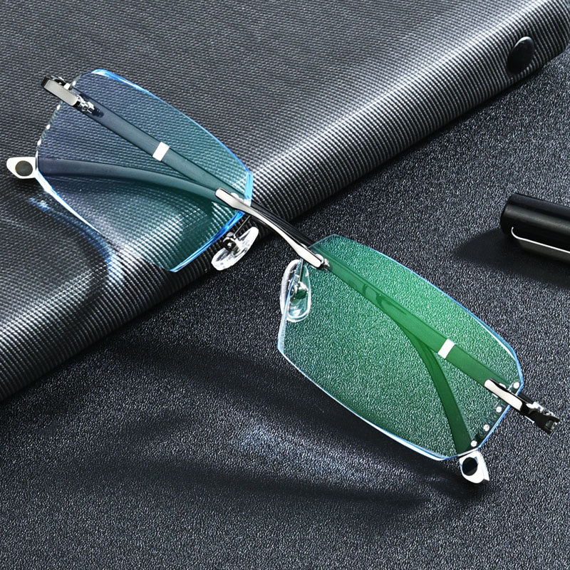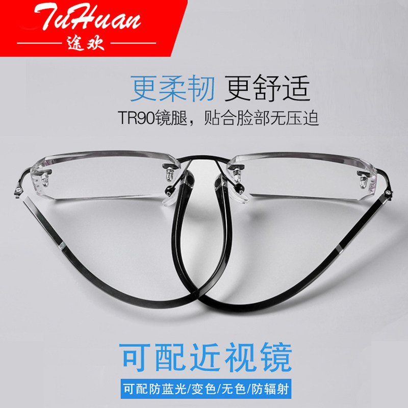 Frame-free diamond cut edge myopia glasses men's anti-blue light finished light spectacle frame degree discoloration glasses