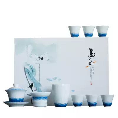 Hand-painted kung fu tea set Cup Cup white porcelain tea set gift box business gift whole set of tea set office meeting
