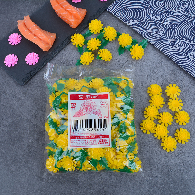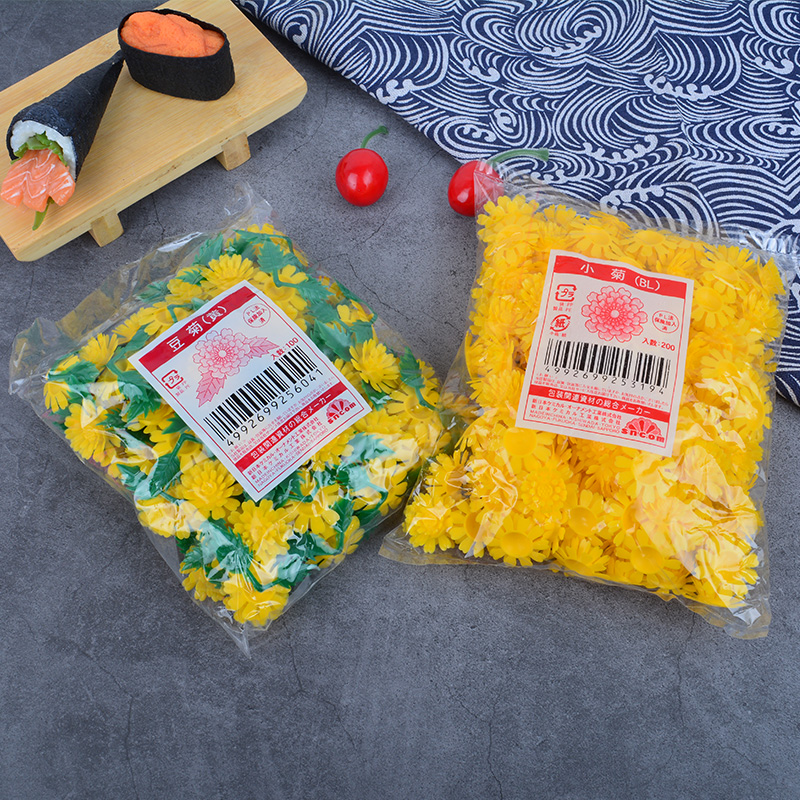 Yellow small chrysanthemum (200 pack) pink small chrysanthemum (200 pack) with green leafy daikon (100 packs) with green leaf pink bean chamomile (100 pack)
