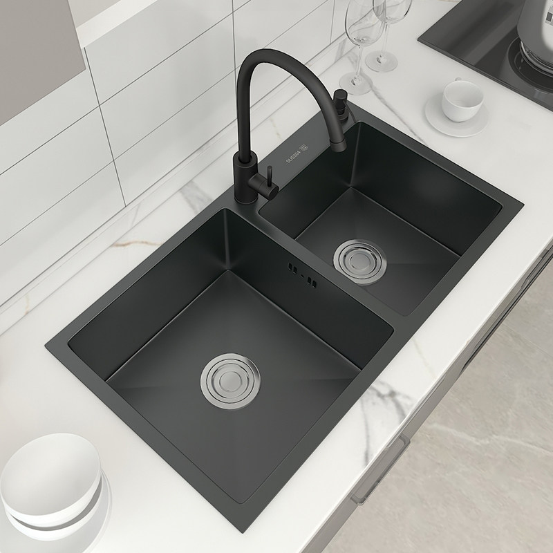 Imeina Black 304 stainless steel washbasin Home Kitchen Sink Thickened Sink Double Sink Drain rack package