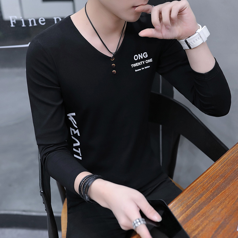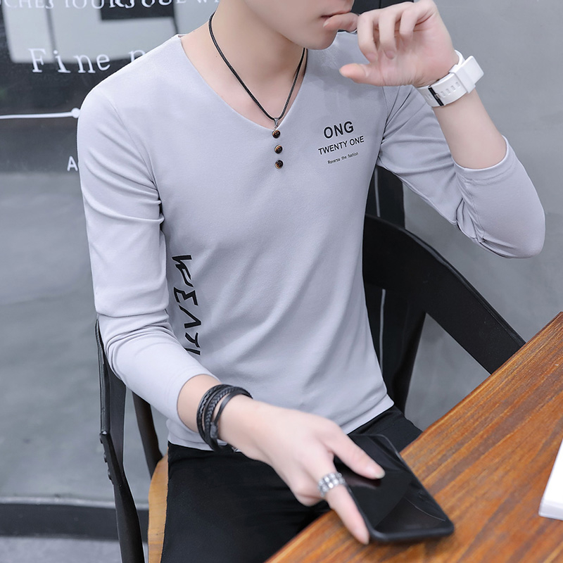 Spring youth T-shirt men's V-neck long-sleeved velvet spring and autumn clothes Korean version trend handsome sweater autumn and winter top clothes