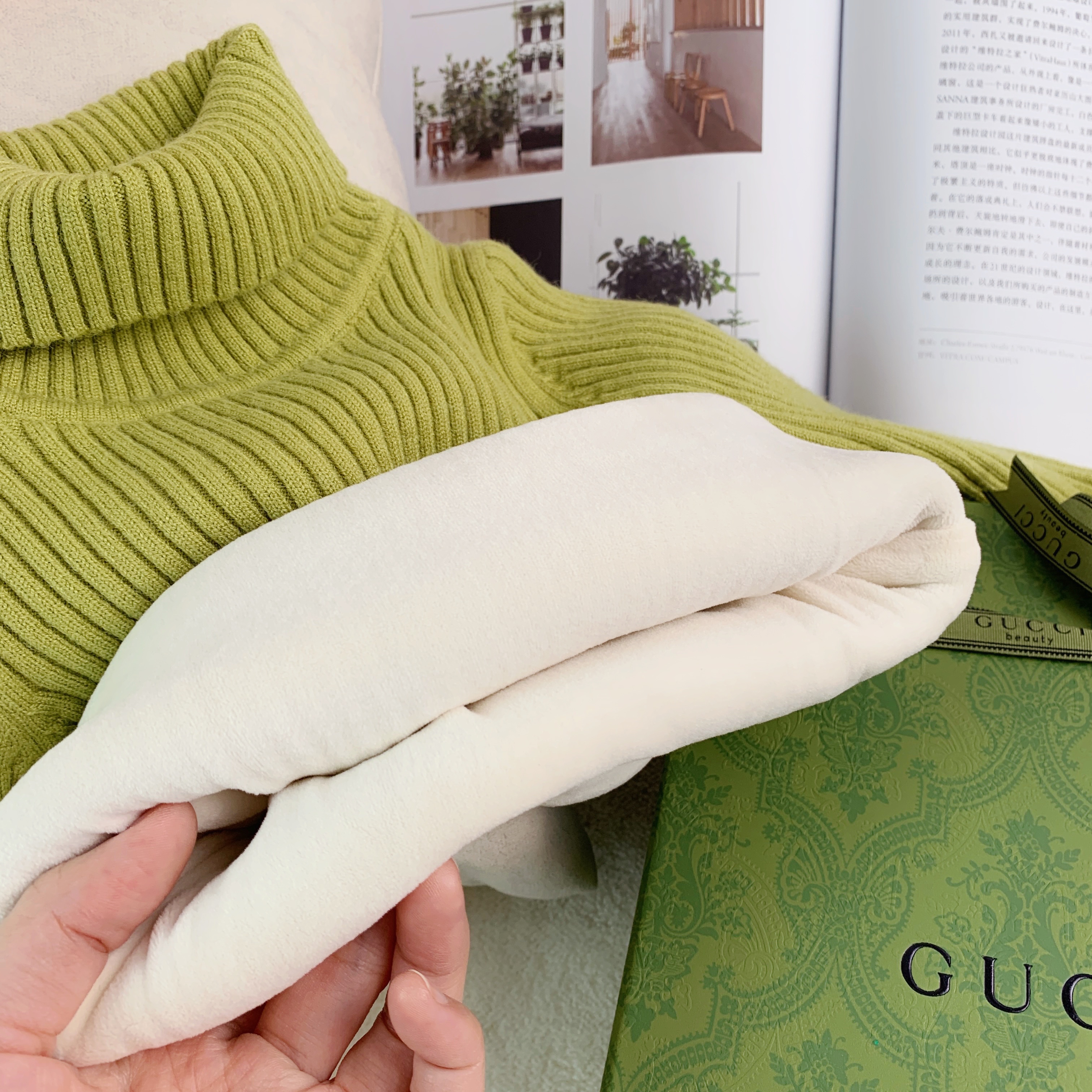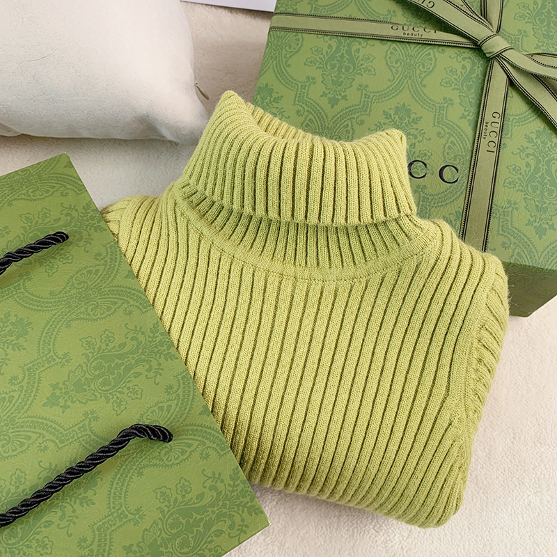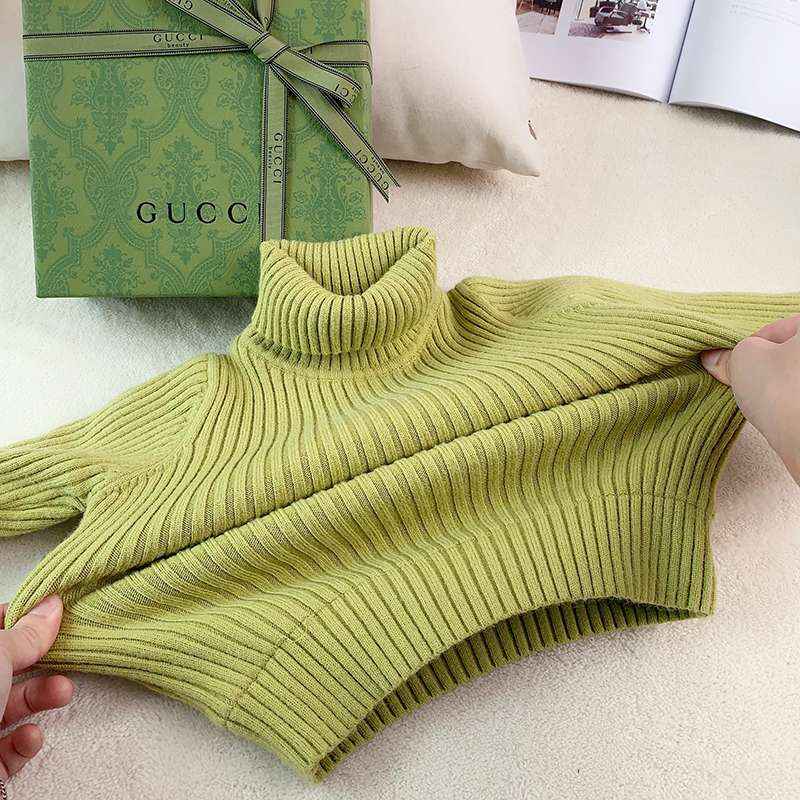 Girl Sweater Winter Clothing Baby Covered Head High Collar Plus Suede Knit Red Green Pure Color Inner Lap