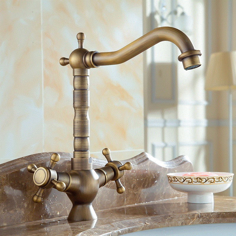 All copper antique faucet European retro faucet double art basin faucet bathroom faucet kitchen faucet