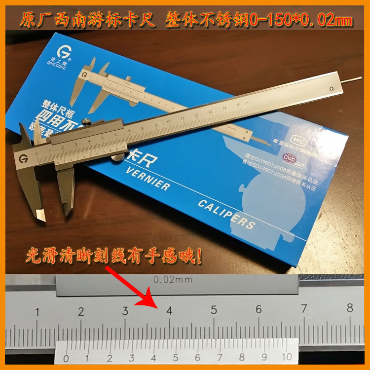 Southwest stainless steel vernier caliper 0-150-200-300 industrial four-use overall closed vernier caliper