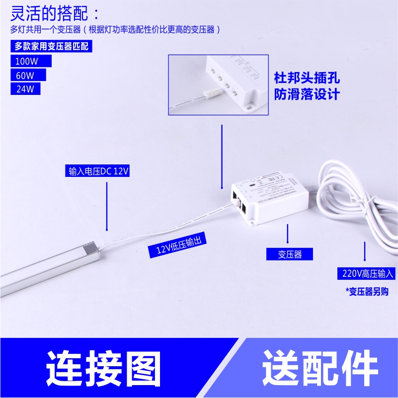 Ultra-thin household surface mounted overall cabinet LED hard light strip kitchen wall cabinet bottom wine cabinet shoe cabinet wardrobe 12V custom line light