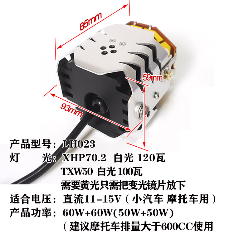 LED motorcycle spotlight far and near light waterproof glass lens bulb BMW modified external flash auxiliary fog lamp