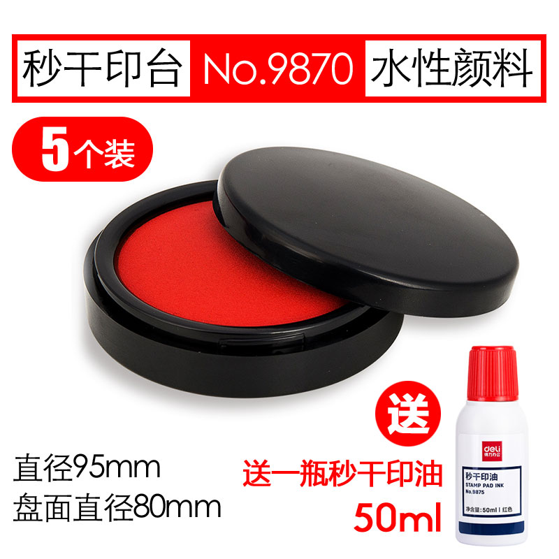 Deli printing clay red printing desk large printing clay box fast drying round ink press handprint small black bank seal oil blue square Indonesian financial office supplies baby sole foot print