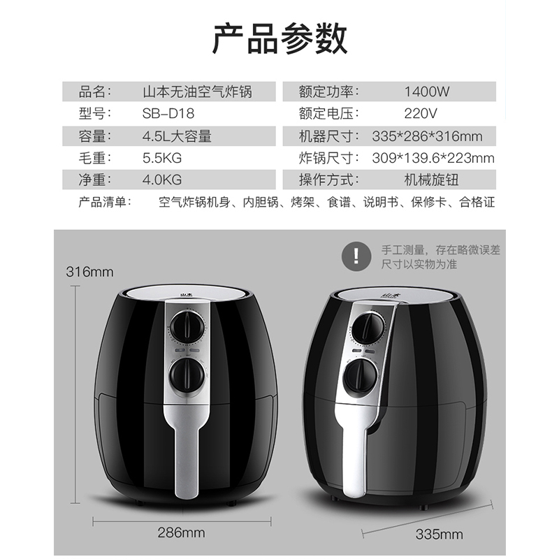 Yamamoto air fryer household top ten brands 4 5 liters three oil-free electric fryer machine sixth generation large capacity