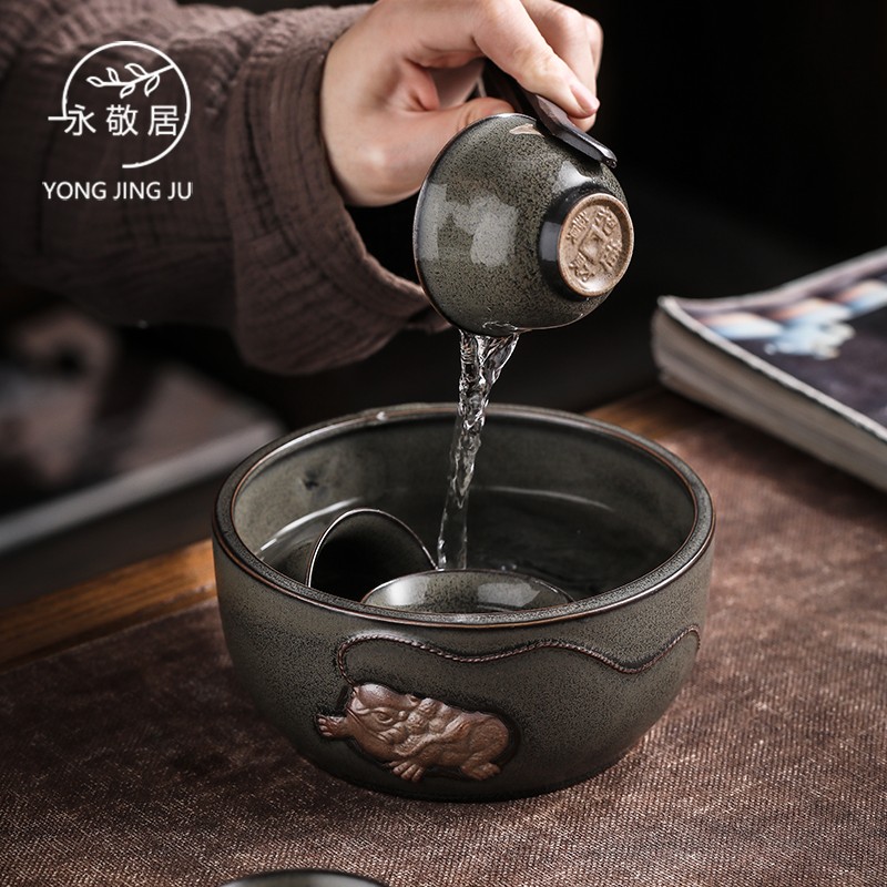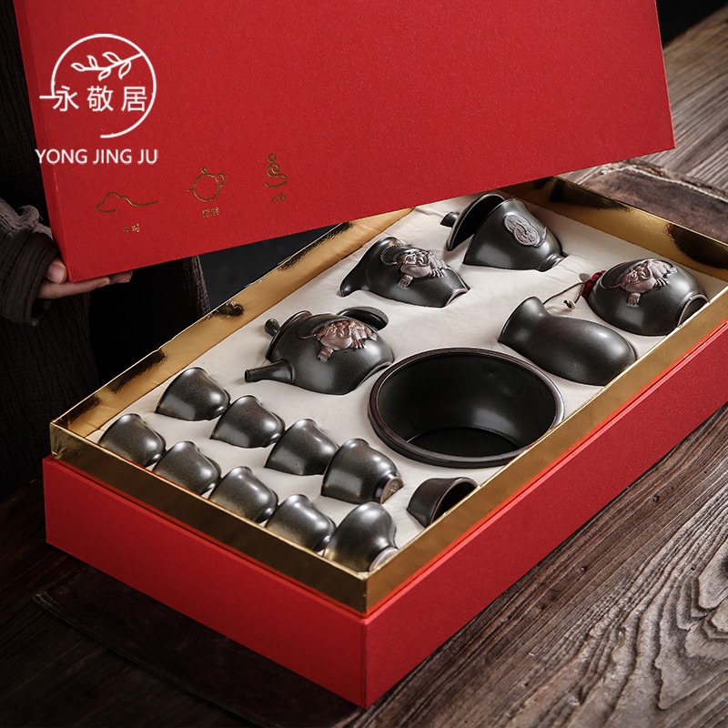 Yongjingju Kung Fu tea set set Pixiu golden toad relief surface tea powder glaze home office retro teapot cover bowl