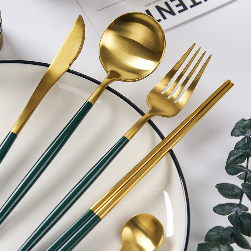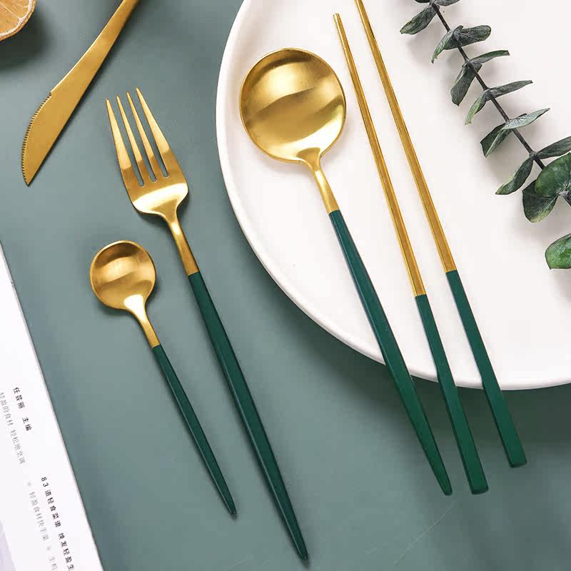 Coffee spoon-ink-green chopsticks-ink green main dining fork-ink green main dining knife-ink green main dining spoon-ink green three sets-ink green (main dining knife main dining spoon for main dining fork)