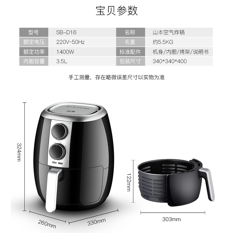 Yamamoto air fryer household top ten brands multifunctional 3 5 liters new oil-free special three sweet potatoes