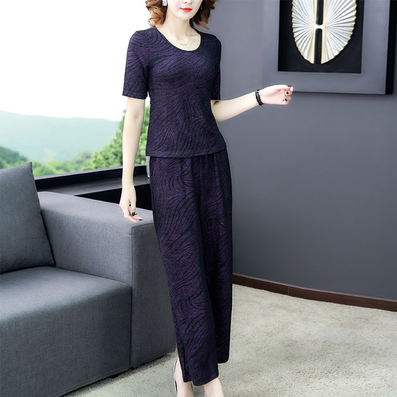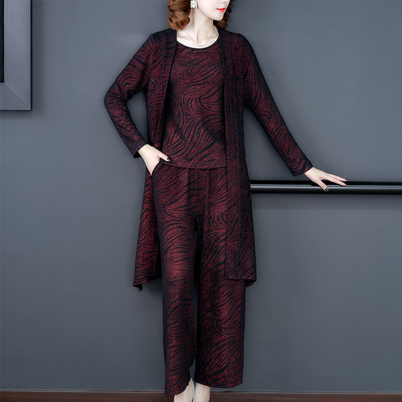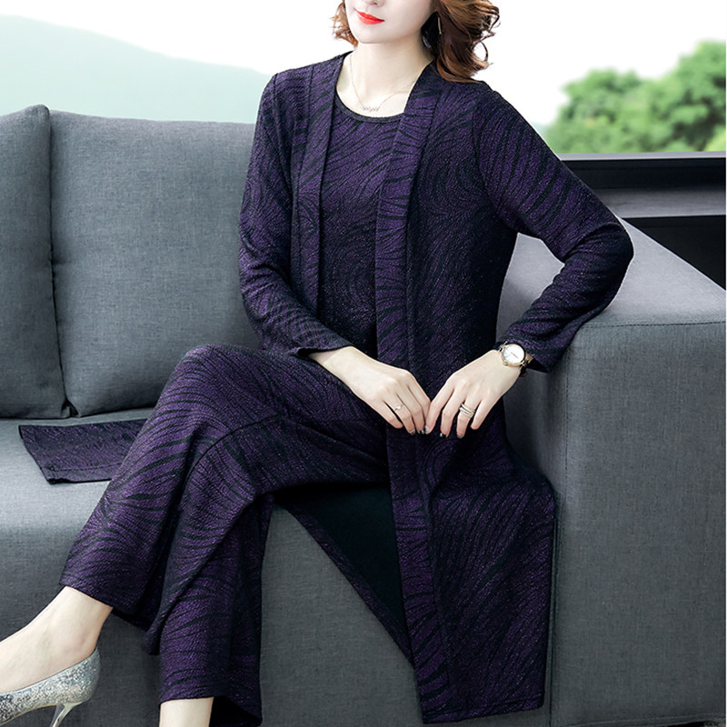 Your lady's high-end Western style knitted slimming suit middle-aged mother cardigan Western style large size three-piece set 2020 spring