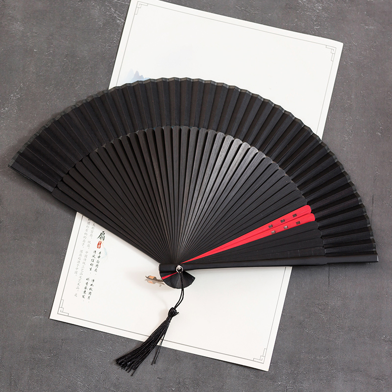 Good opening and closing large red Chinese windy fan-style fan dance Ancient windy Han clothes streaming Su qipao performance folding fan bone hollowed-out