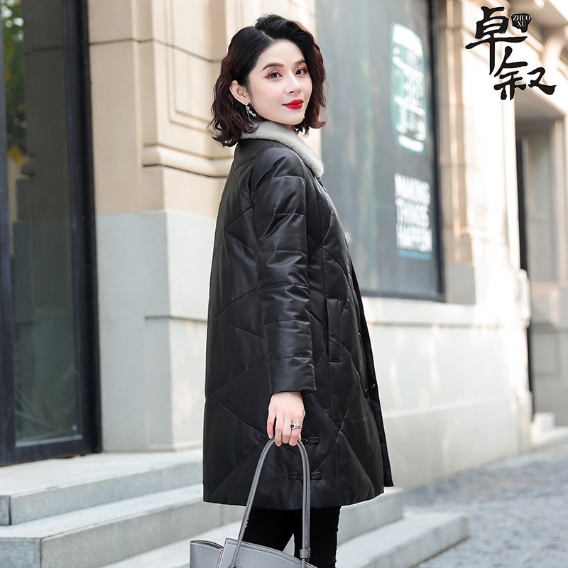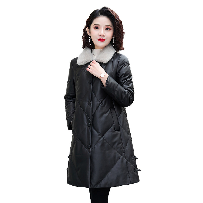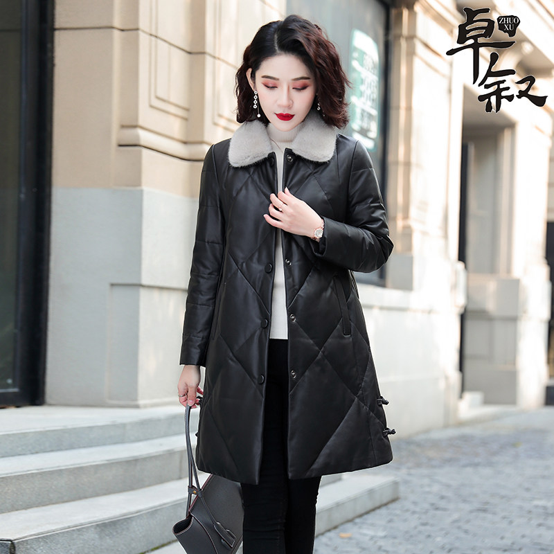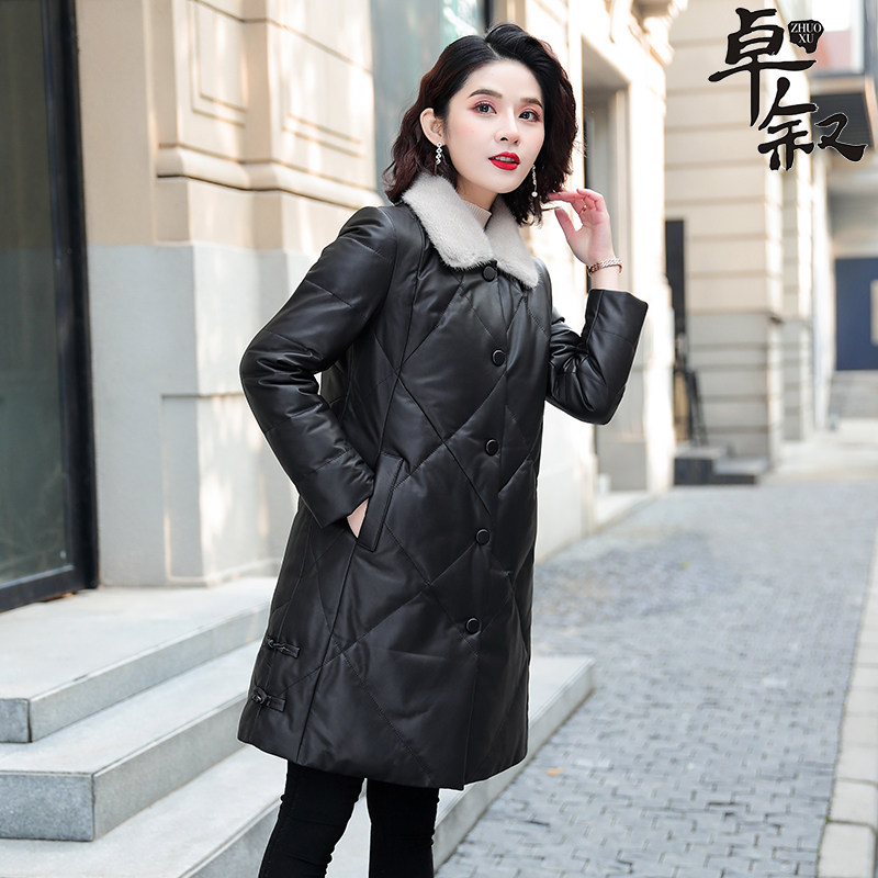 Real leather down clothes woman 2021 new medium long version sheep leather Buffy mink fur small black mom winter coat