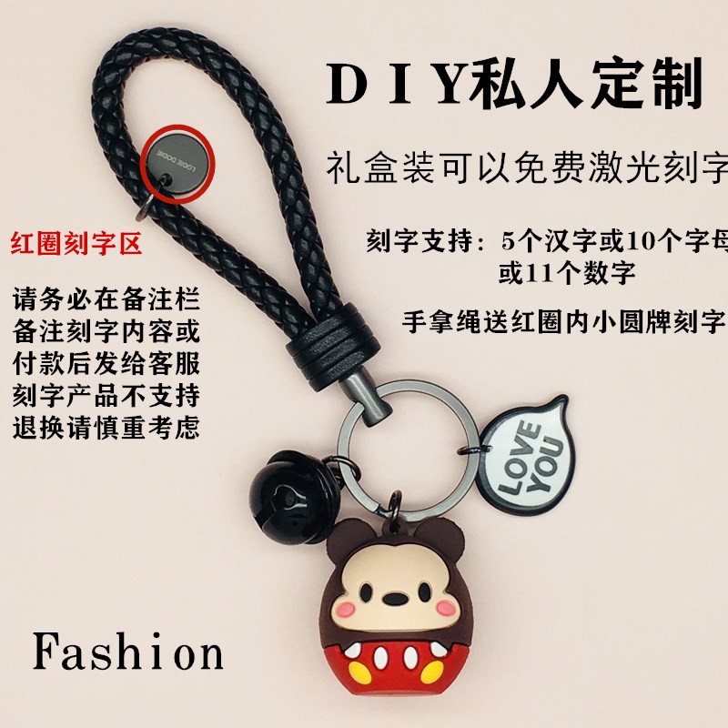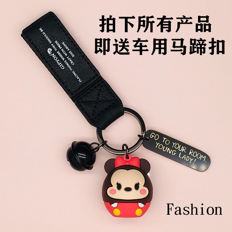 Mickey car keychain female ins cartoon cute leather car key pendant ring chain couple gift