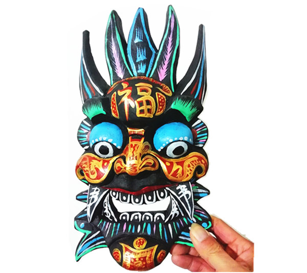 Guizhou Folk Characteristics Handmade Wood Engraving to Face the Face Spectral Performance Secret Room Escape Props Decoration Hanging Decoration Gifts