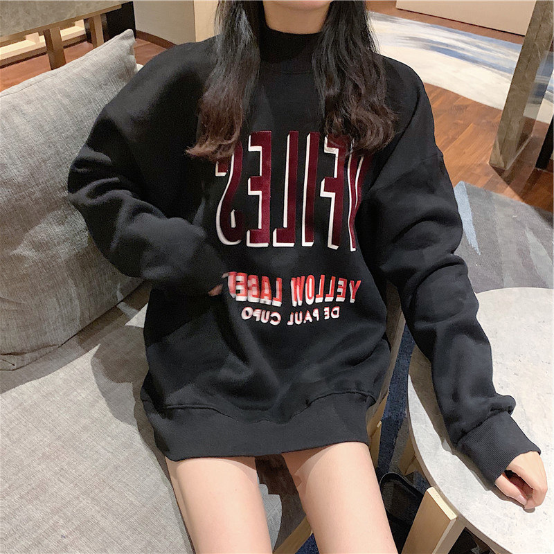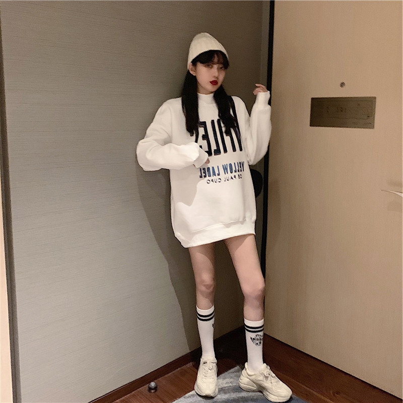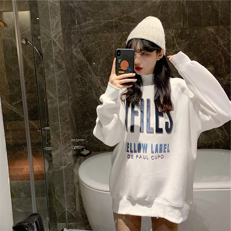 White semi-high neckline women's spring and autumn slim 2022 new medium long version without cap pure cotton loose with lazy wind