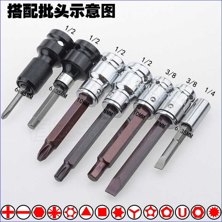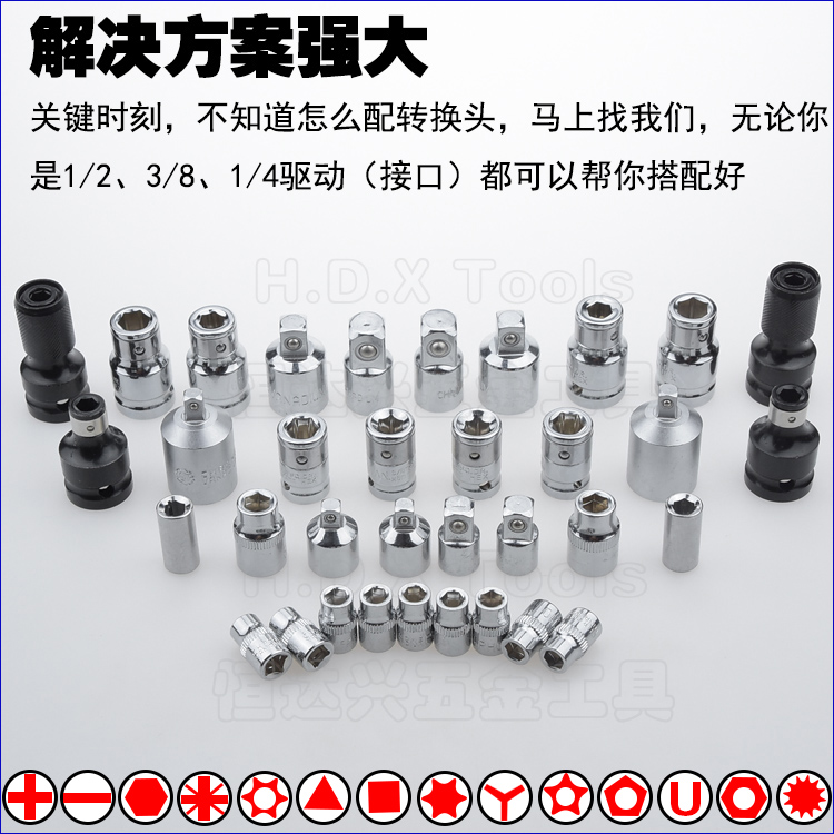 Square Hole Swivel Hexagonal Impact Star Batch Clasp Changing Diameter Joint Transfer Head Large Missile Sleeve 1 2 Turns 3 8 Turns 1 4
