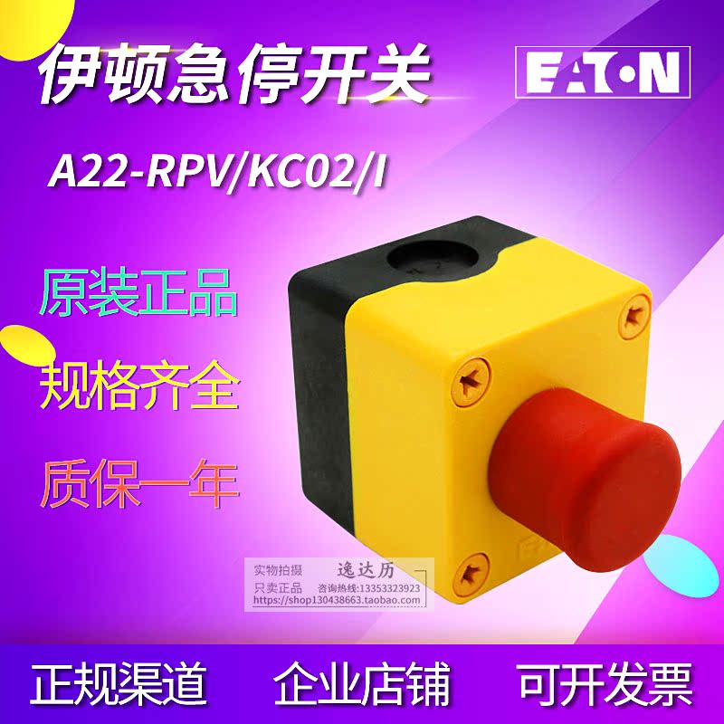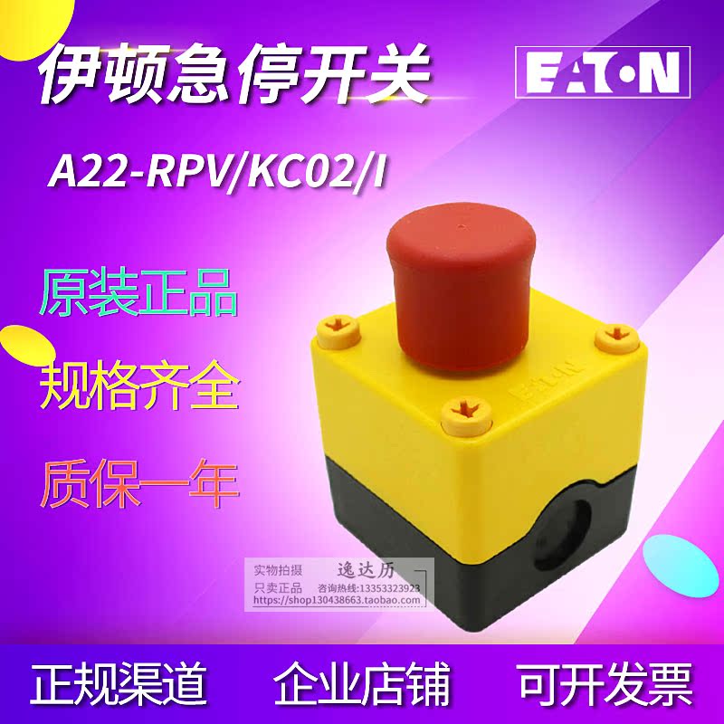 EATON Eton Mueller A22-RPV KC02 I with 2 everclosed straight Tie reset emergency stop button with box complete set