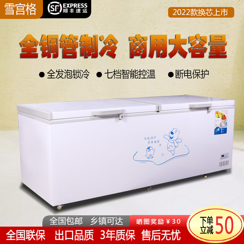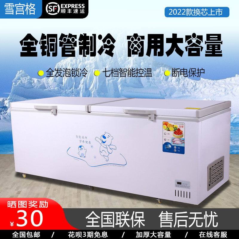 Freezer commercial large-capacity horizontal energy-saving freezer refrigerator freezer single and double temperature copper tube refrigerator fresh-keeping direct freezer