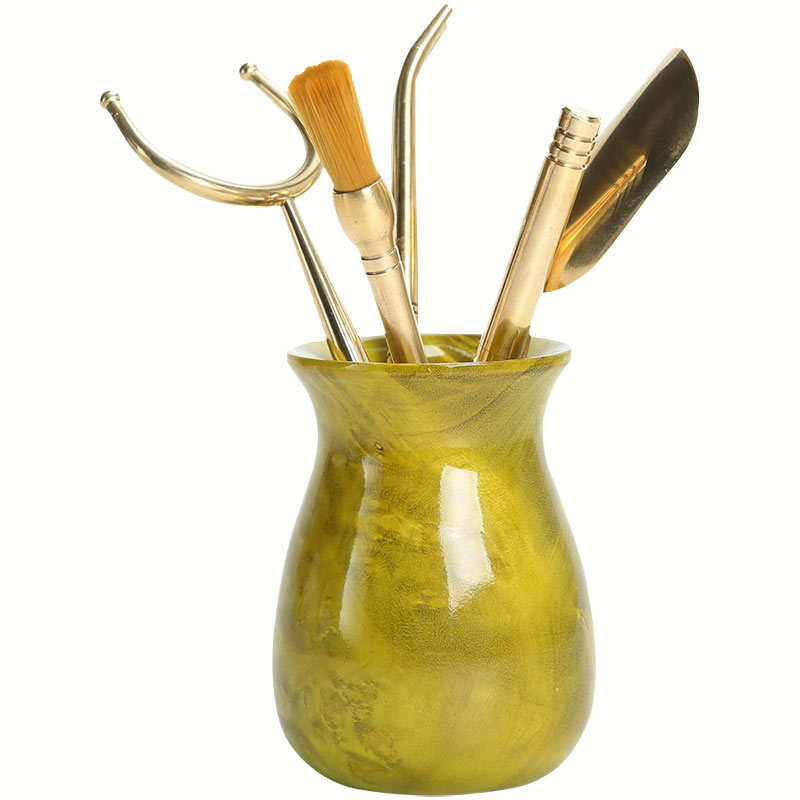Gold camphor wood tea ceremony six gentlemen hand-carved solid wood tea tube pure copper tea needle tea clip kung fu tea set tea accessories