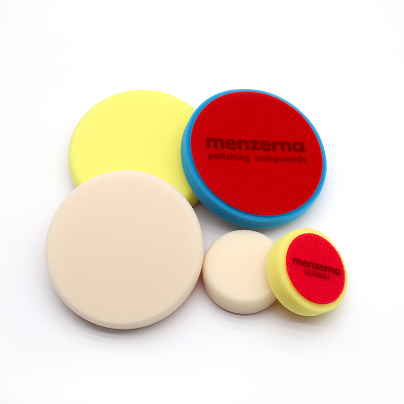 3-inch white (coarse throw) 3-inch yellow (medium or fine restoration) 6-inch white (rough throw) 6-inch yellow (medium throw) 6-inch blue (fine restoration)