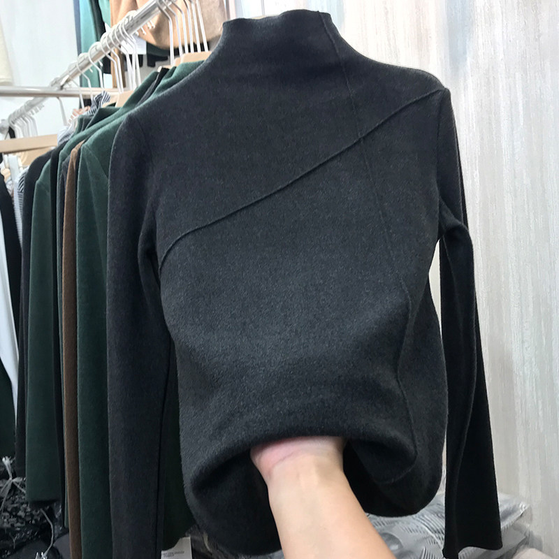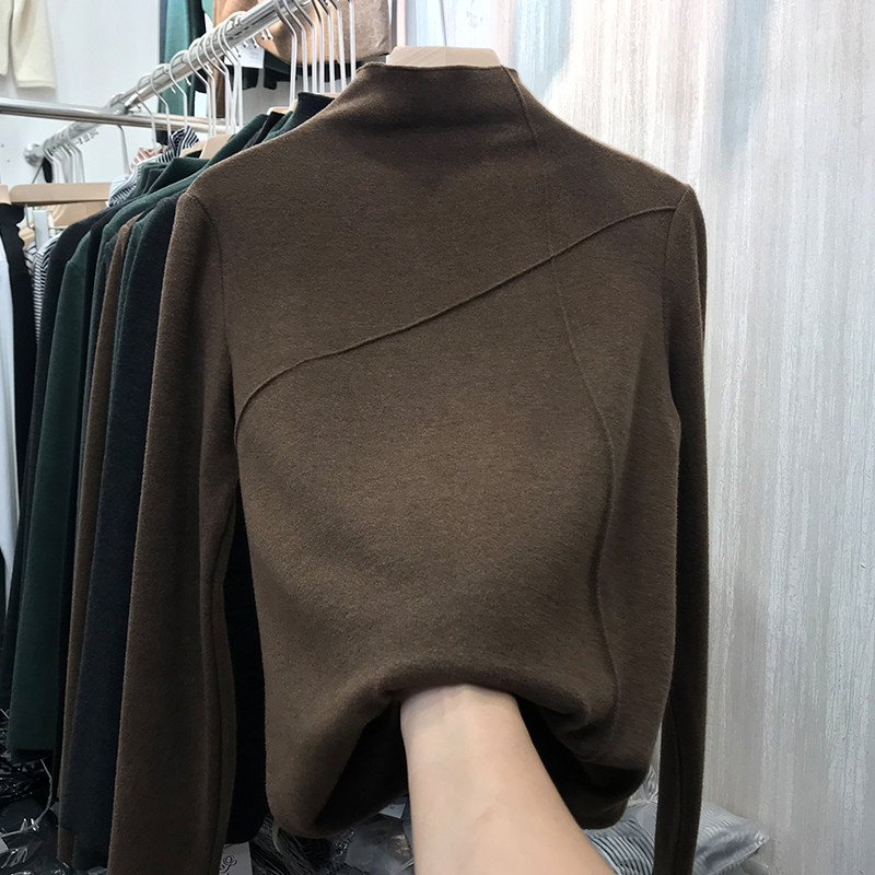 Double-sided De Velvet Western style semi-turtleneck base shirt women's autumn and winter with velvet thickened long-sleeved T-shirt brushed top tide