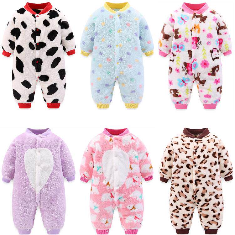 Baby jumpsuit pajamas spring and autumn and winter thickened romper 0-1-2 years old male and female baby climbing clothes newborn clothes