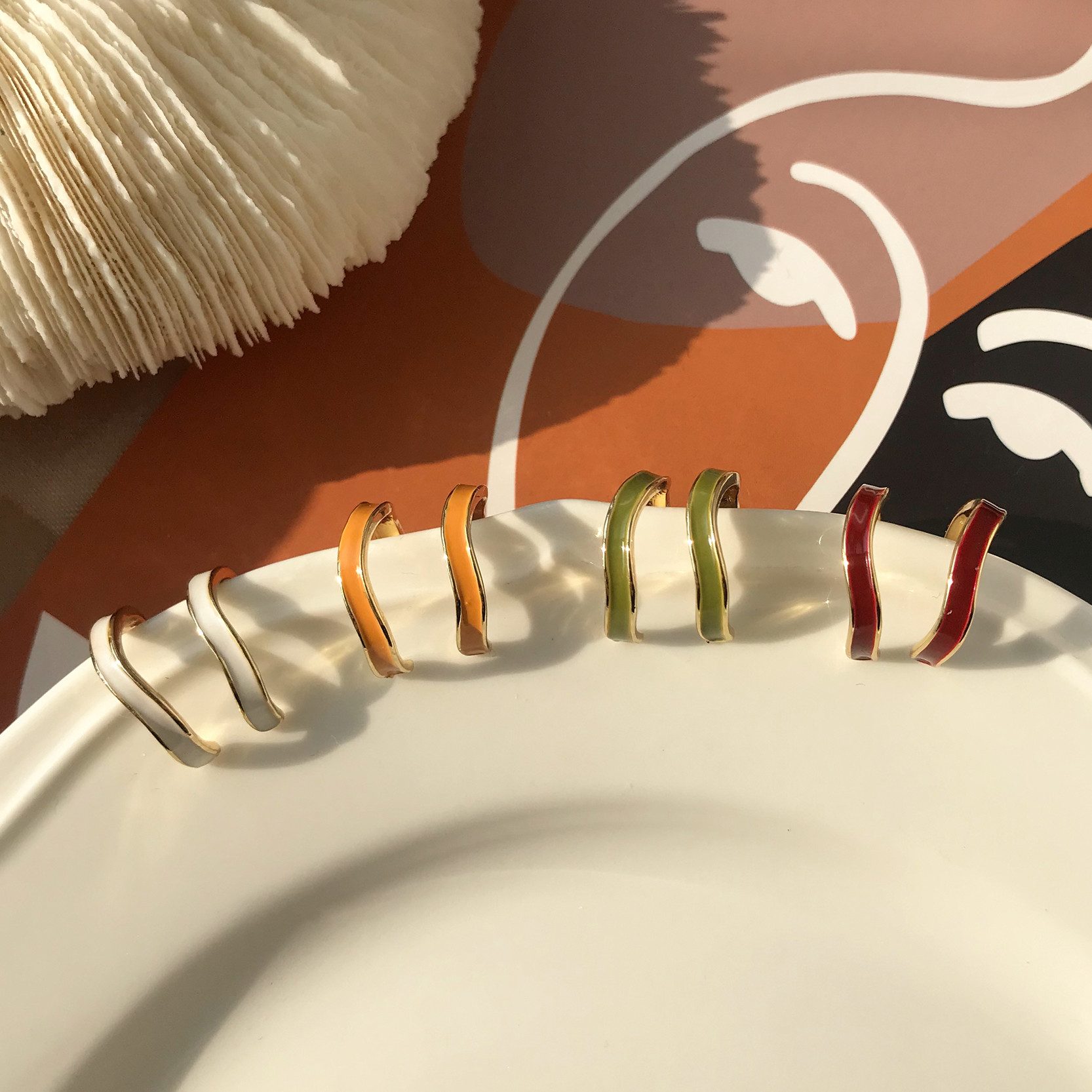 For the evening 925 silver needle color wavy earrings for women simple cold wind twisted drop glaze earrings Net red vintage earrings