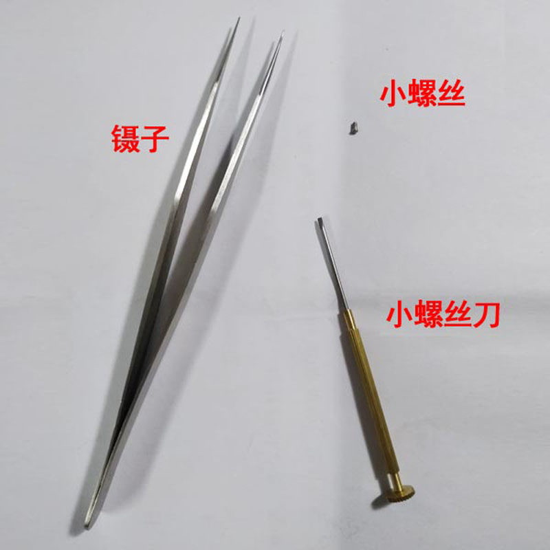 One small screw (not giving tools) Two small screws (not giving tools) One small screw (not giving tools) One small screw (for tweezers and small screwdriver) Two small screws (for tweezers and small screwdriver)