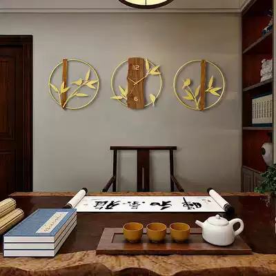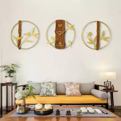 New Chinese style solid wood wall clock living room home fashion personality creative atmosphere clock Chinese style decorative hanging watch