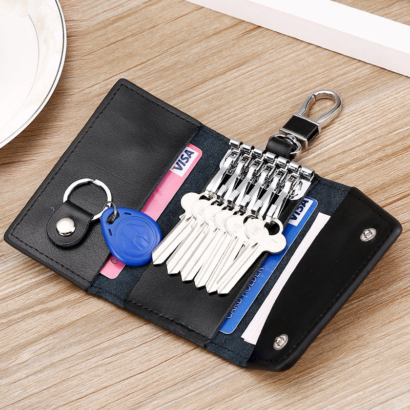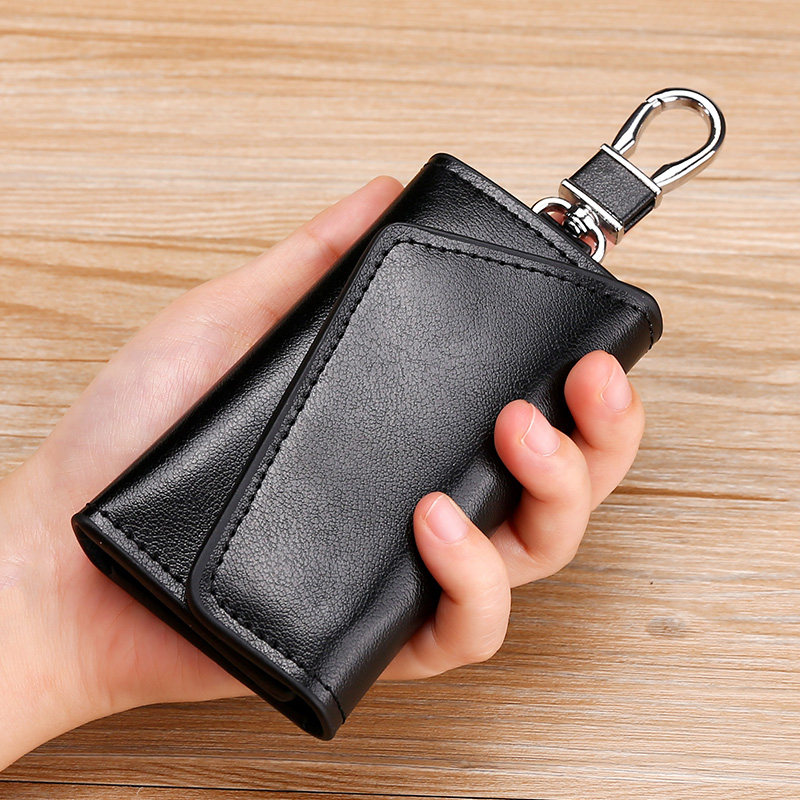 Key bag men's leather large-capacity multi-function waist hanging cowhide key bag women's simple and practical car key bag card case