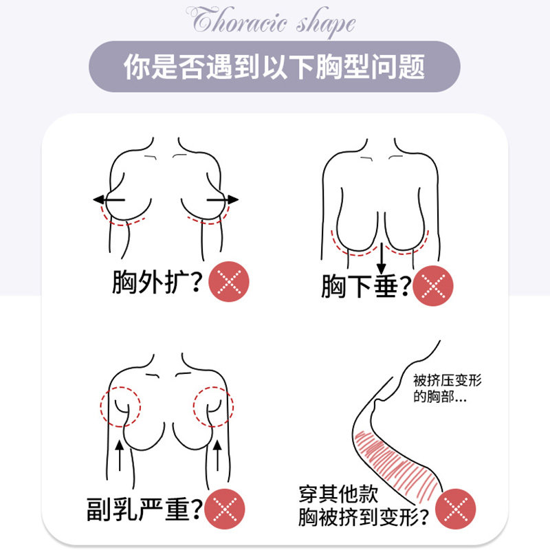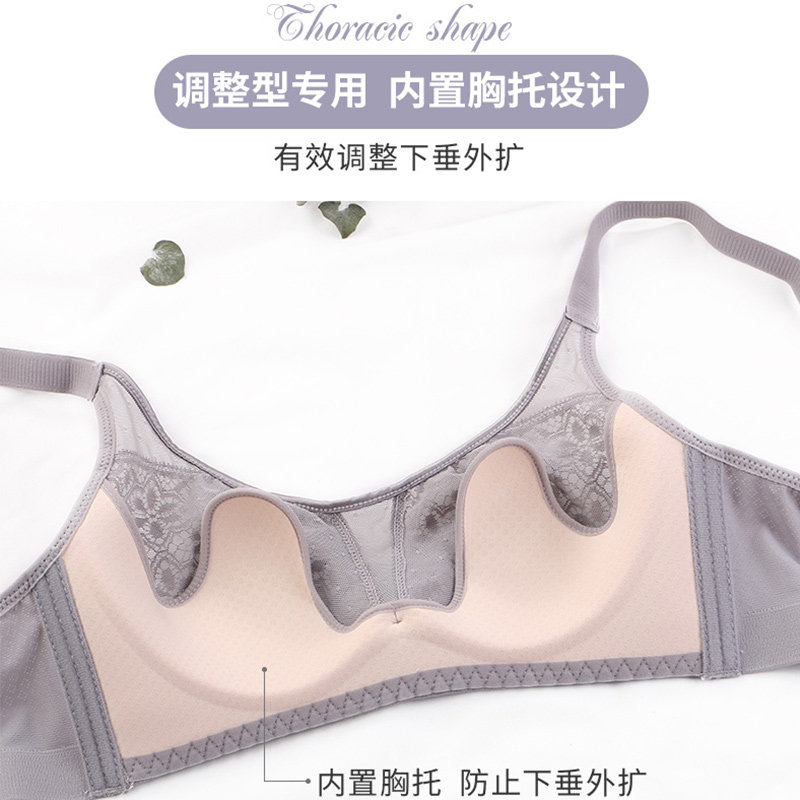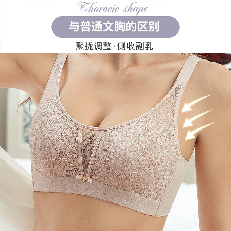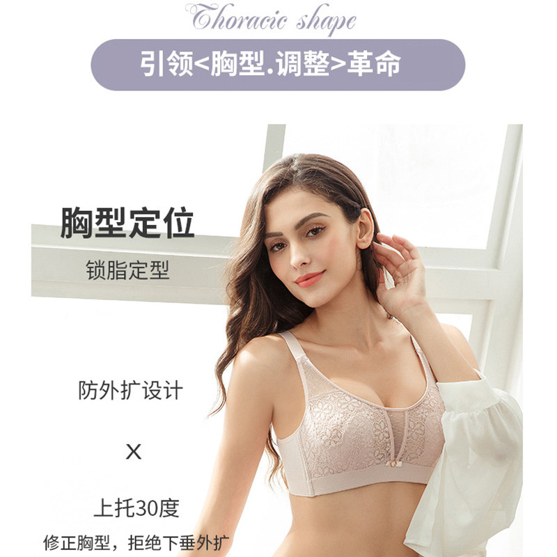 Adjusted underwear female gathering anti-outward expansion of vertical breast large breast and small ultra-thin steel-free ring bra