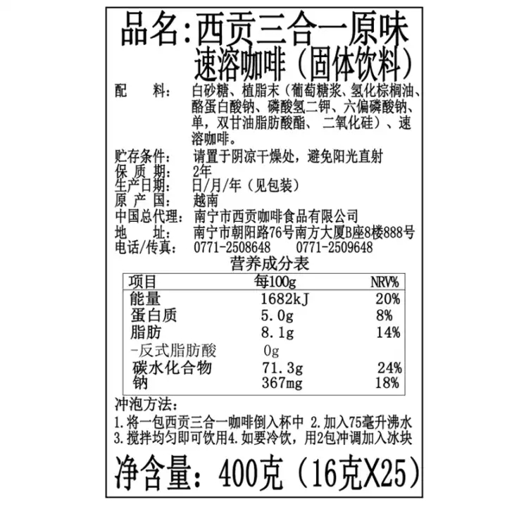Vietnam imported Saigon Coffee original flavor three-in-one instant coffee powder bagged brewing drink original flavor extra strong 400g 25 pieces