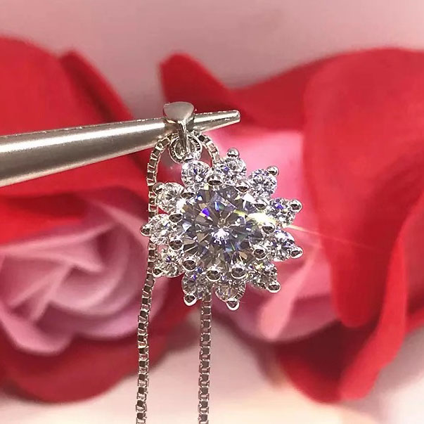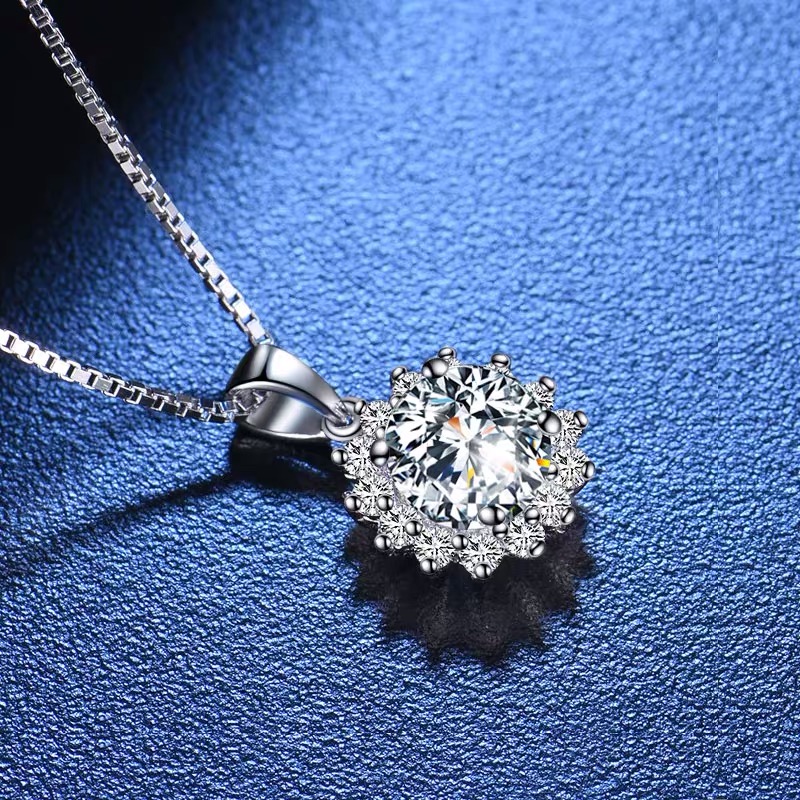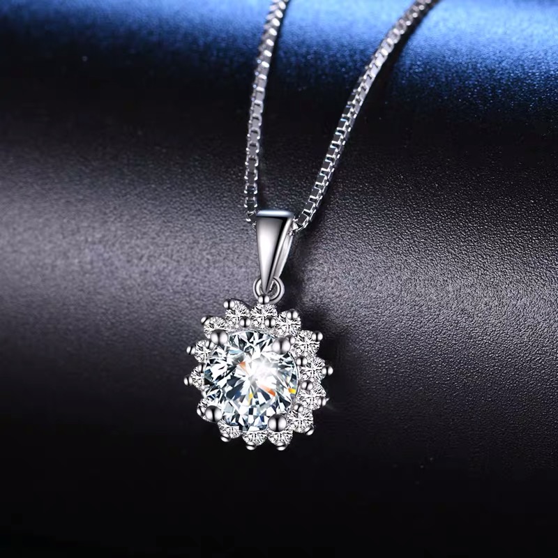 PT 950 Platinum Necklady Sunflower Mosan Snow Pearl Simulated Diamond Closure Bone Cover Birthday Gift