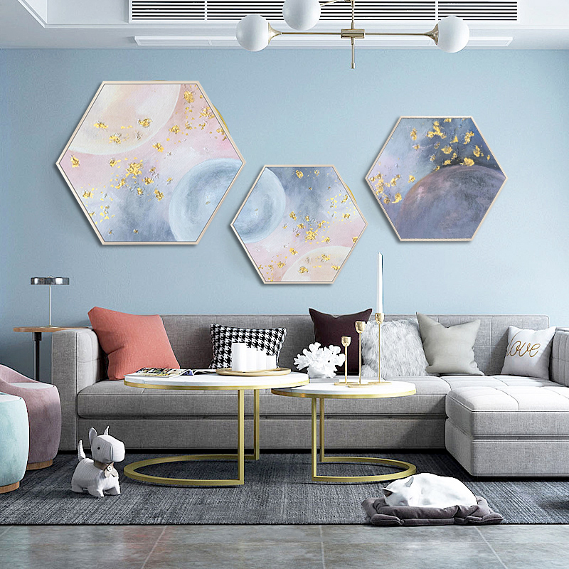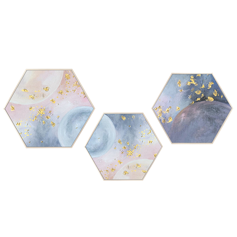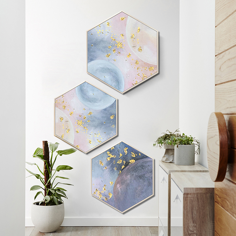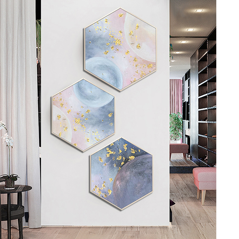Hand-painted porch oil painting living room decoration painting light luxury Scandinavian hanging painting gold foil painting pink planet modern simple murals