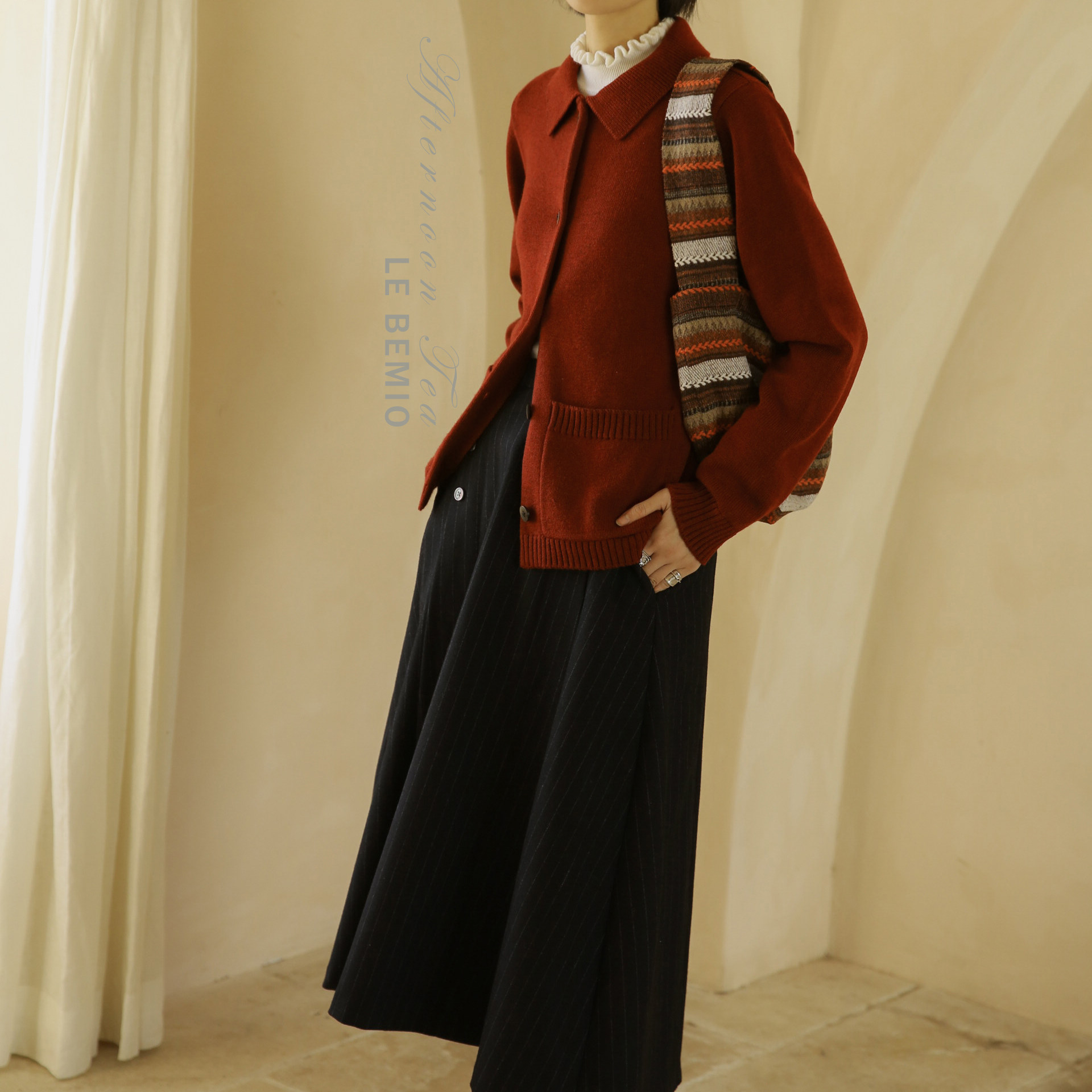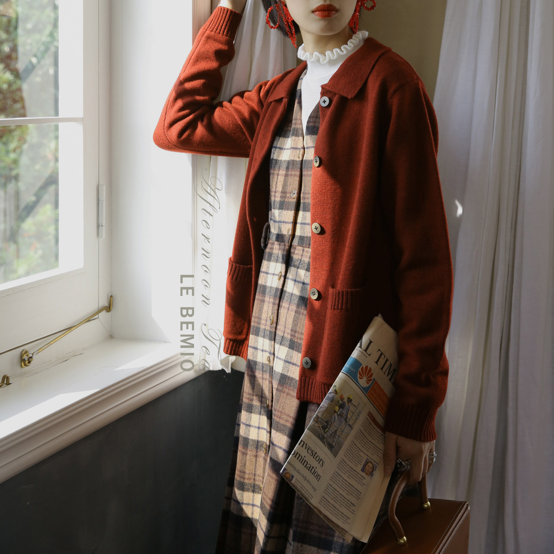"Baihua" Japanese retro niche lapel wool blended short knit sweater cardigan coat female autumn and winter