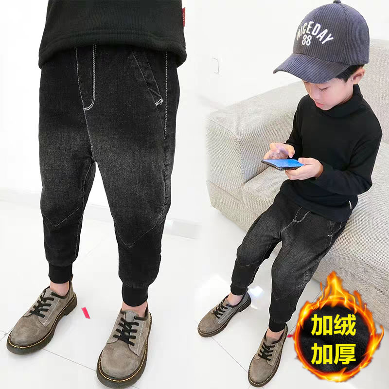 Boys jeans new foreign style autumn and winter plus velvet children's pants large children's casual slim trousers tide children's clothing