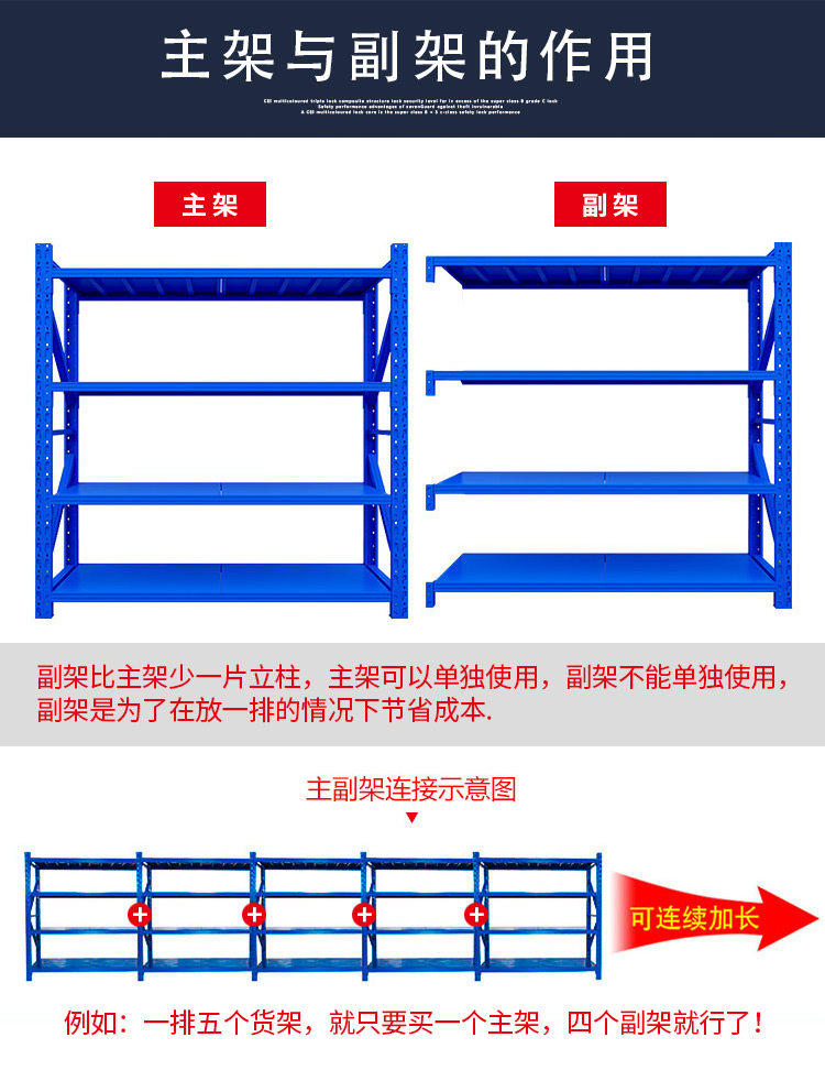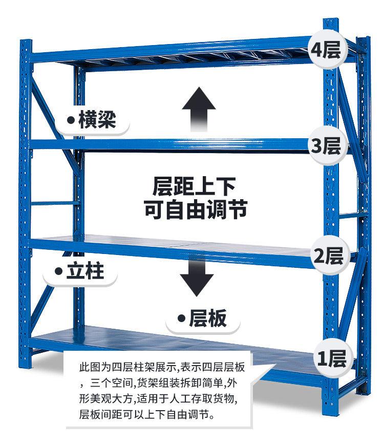 Warehouse warehouse warehouse shelf sub-storey supermarket warehouse display rack iron frame angle steel rack clothing shelf