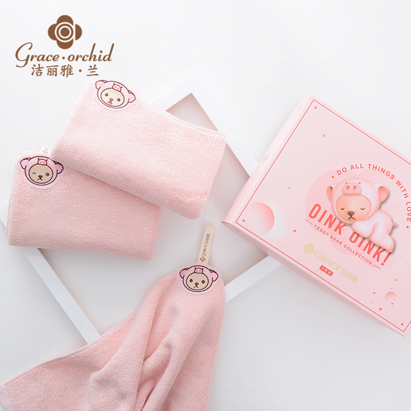 Jie Liya Lan children's towel Pure cotton soft household absorbent Teddy baby facial towel Three New Year Gift box