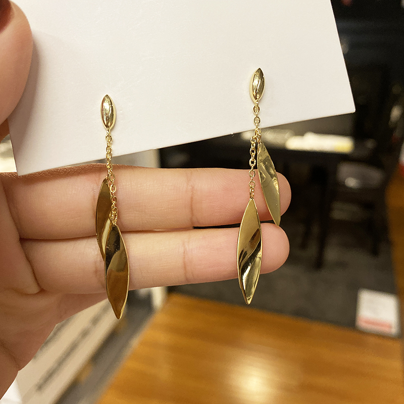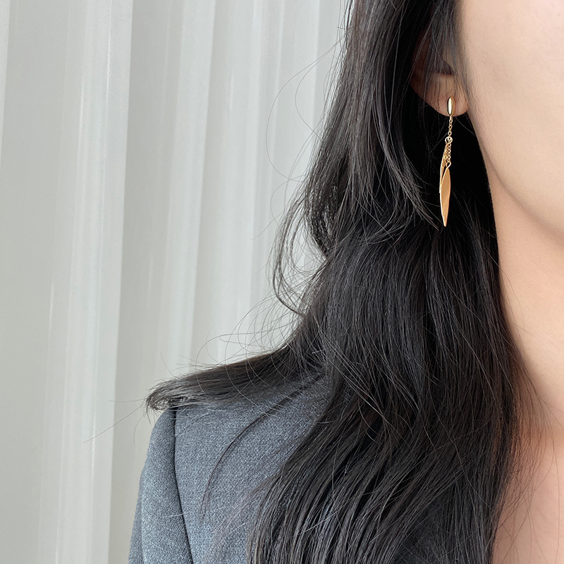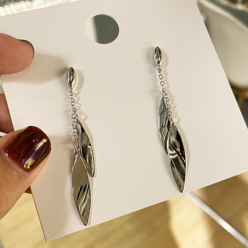 Swaying and agile whole body 925 sterling silver leaf tassel long earrings temperament light luxury simple high-end earrings