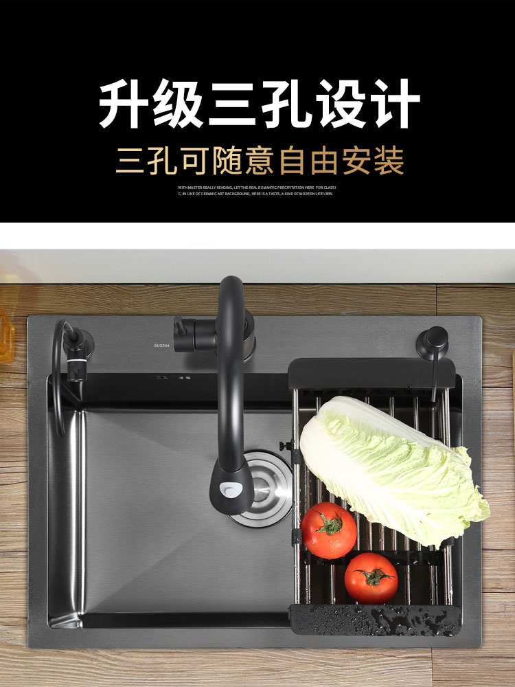 304 stainless steel black nano sink single sink kitchen sink sink under the table handmade set home