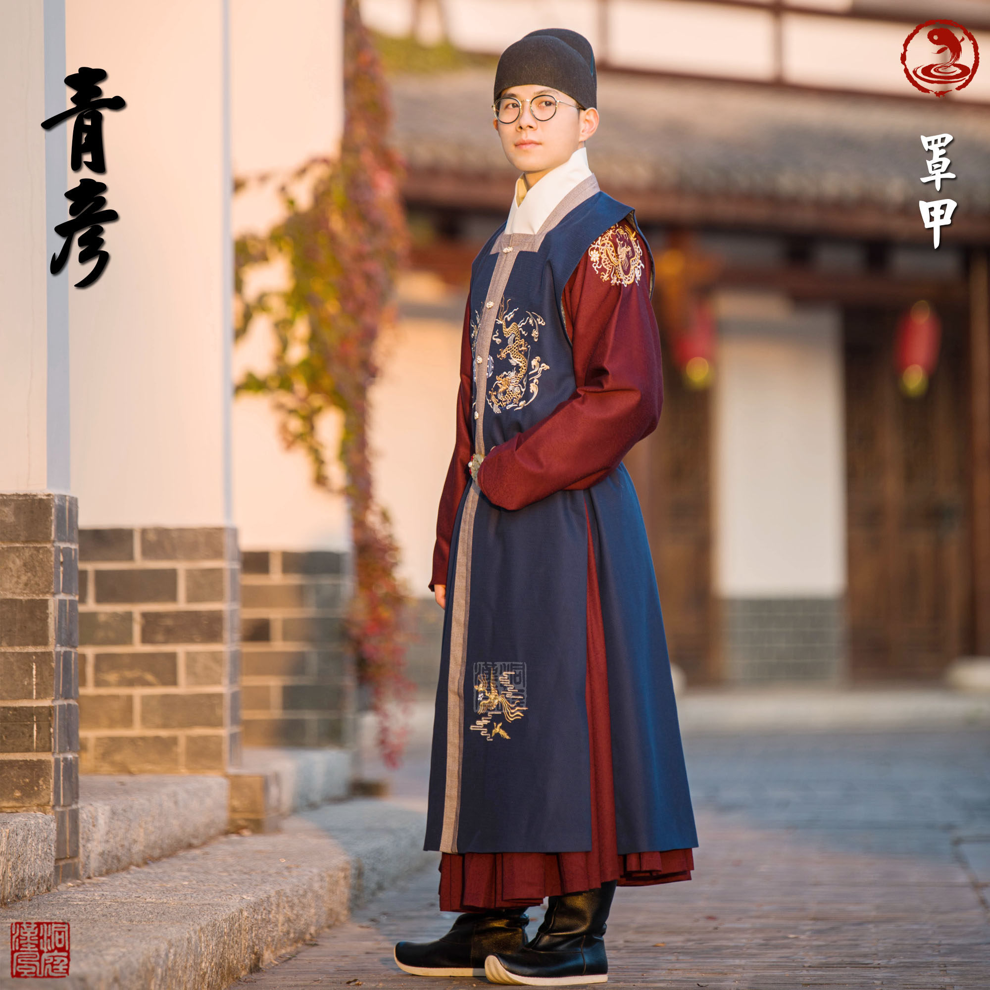 (Dongting Han style Hanfu) dark blue python pattern embroidered bright armor (Qingyan) (hangli)