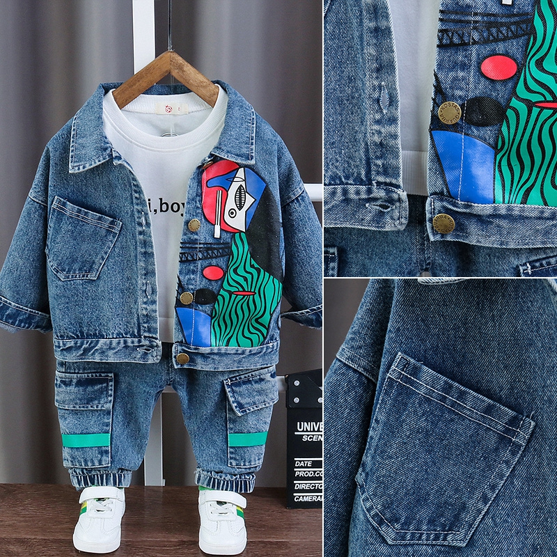Children's suits boys' autumn clothes children's cotton denim jacket handsome boys spring and autumn three-piece suits 1-3-5 years old 2