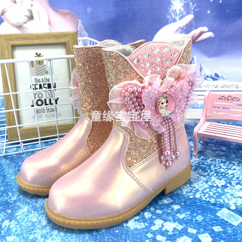 Girls mid-tube boots winter new children's warm plus velvet snow boots Frozen Elsa Princess boots cotton shoes