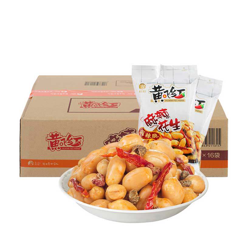 Huang Feihong spicy peanuts 210g*16 bags of the whole box 70g110g410g Huang Feihong fried nuts leisure snacks