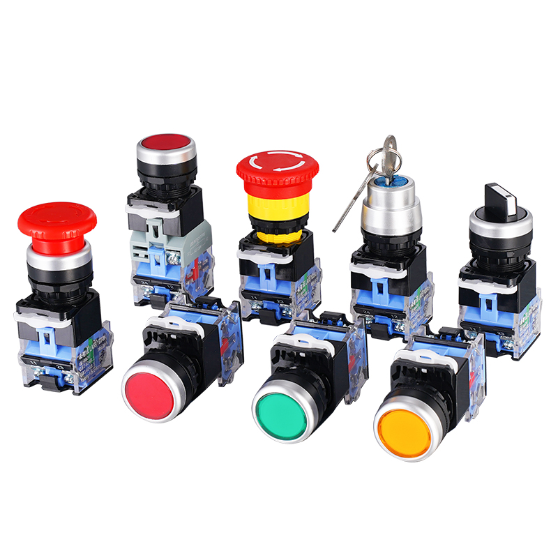 Red flat head button-self reset-Silver Point Green flat head button-self reset-Silver Point yellow flat head button-self reset-Silver Point blue flat head button-self reset-Silver Point White flat head