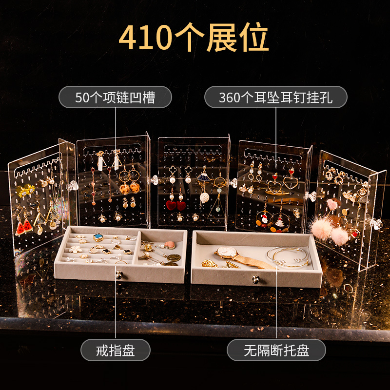 Jewelry storage box Earrings earrings display shelf Hanging necklace ear needle ring Makeup table finishing transparent large capacity