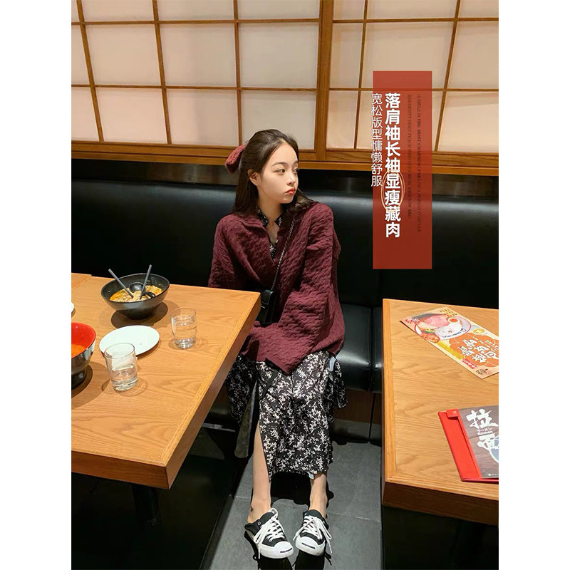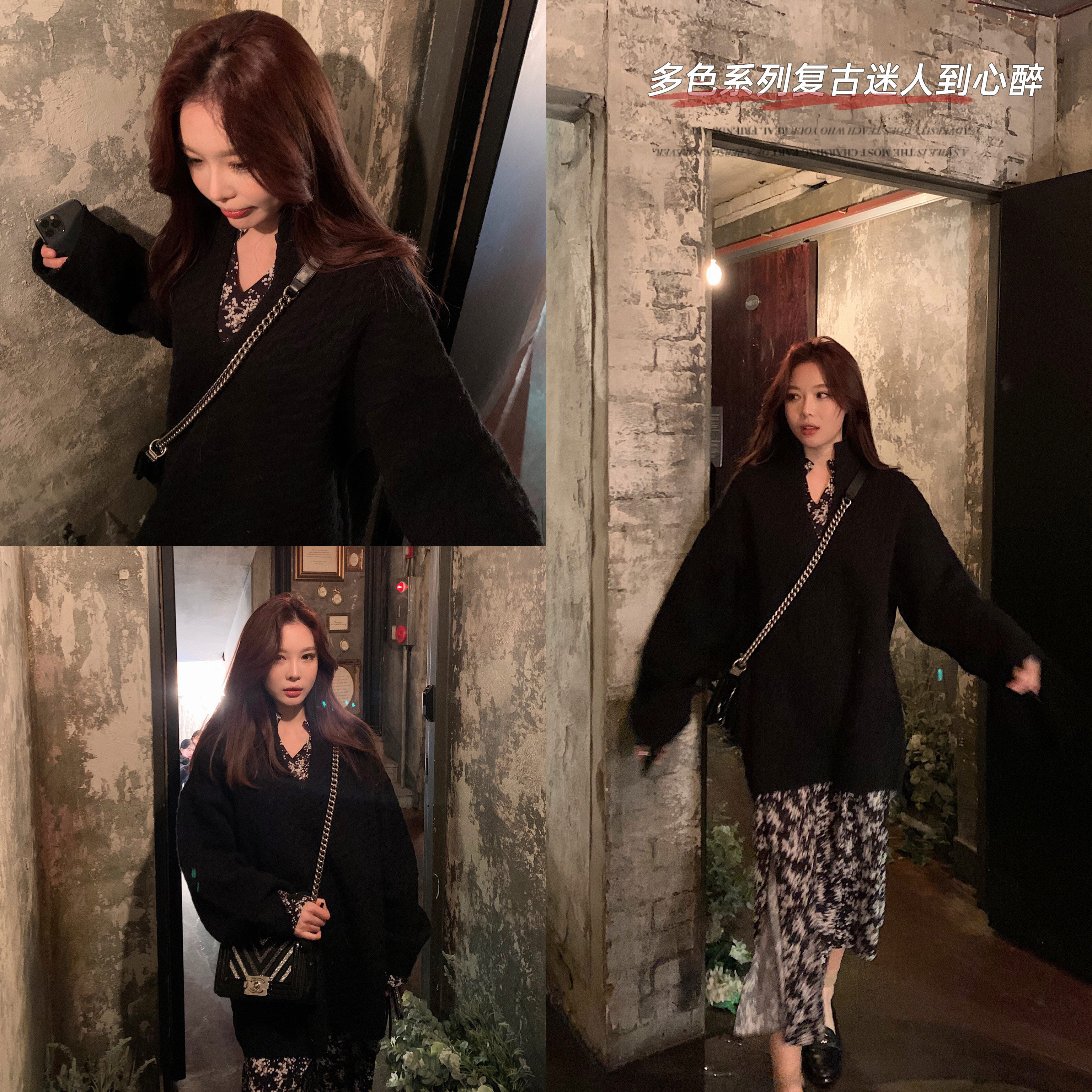 Mrs Qian Korean version of twist knitted top women's autumn and winter 2019 new small lazy wind V-neck base sweater